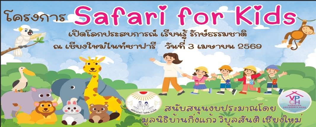 เมื่อวันที่ 3 เมษายน 2569 มูลนิธิบ้านกิ่งแก้ว วิบุลสันติ เชียงใหม่ ได้ร่วมสร้างประสบการณ์แห่งการเรียนรู้ครั้งสำคัญ โดยเป็นผู้สนับสนุนหลักในโครงการ “SAFARI FOR KIDS” ซึ่งจัดขึ้นท่ามกลางบรรยากาศธรรมชาติ ณ เชียงใหม่ไนท์ซาฟารี เพื่อเปิดโอกาสให้เด็กๆ จากสถานสงเคราะห์เด็กบ้านเวียงพิงค์ ได้สัมผัสประสบการณ์ทัศนศึกษาและเรียนรู้วิถีชีวิตสัตว์ป่านานาชนิดอย่างใกล้ชิด ในพิธีเปิดงานครั้งนี้ นางสาวณัฐวรรณ เนตรแสงสี เลขานุการมูลนิธิบ้านกิ่งแก้ว วิบุลสันติ พร้อมด้วย นางกาญจนา สีสัตย์ซื่อ ผู้ปกครองสวัสดิภาพ ได้ให้เกียรติเป็นตัวแทนประธานกรรมการมูลนิธิฯ เข้าร่วมในพิธีเปิดและร่วมกิจกรรมกับเด็กๆ